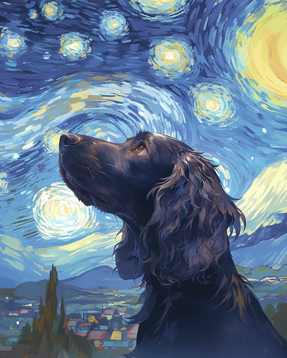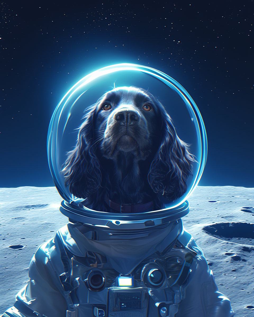 AI-generated Portraits of my dog, Truffle, created with MidJourney