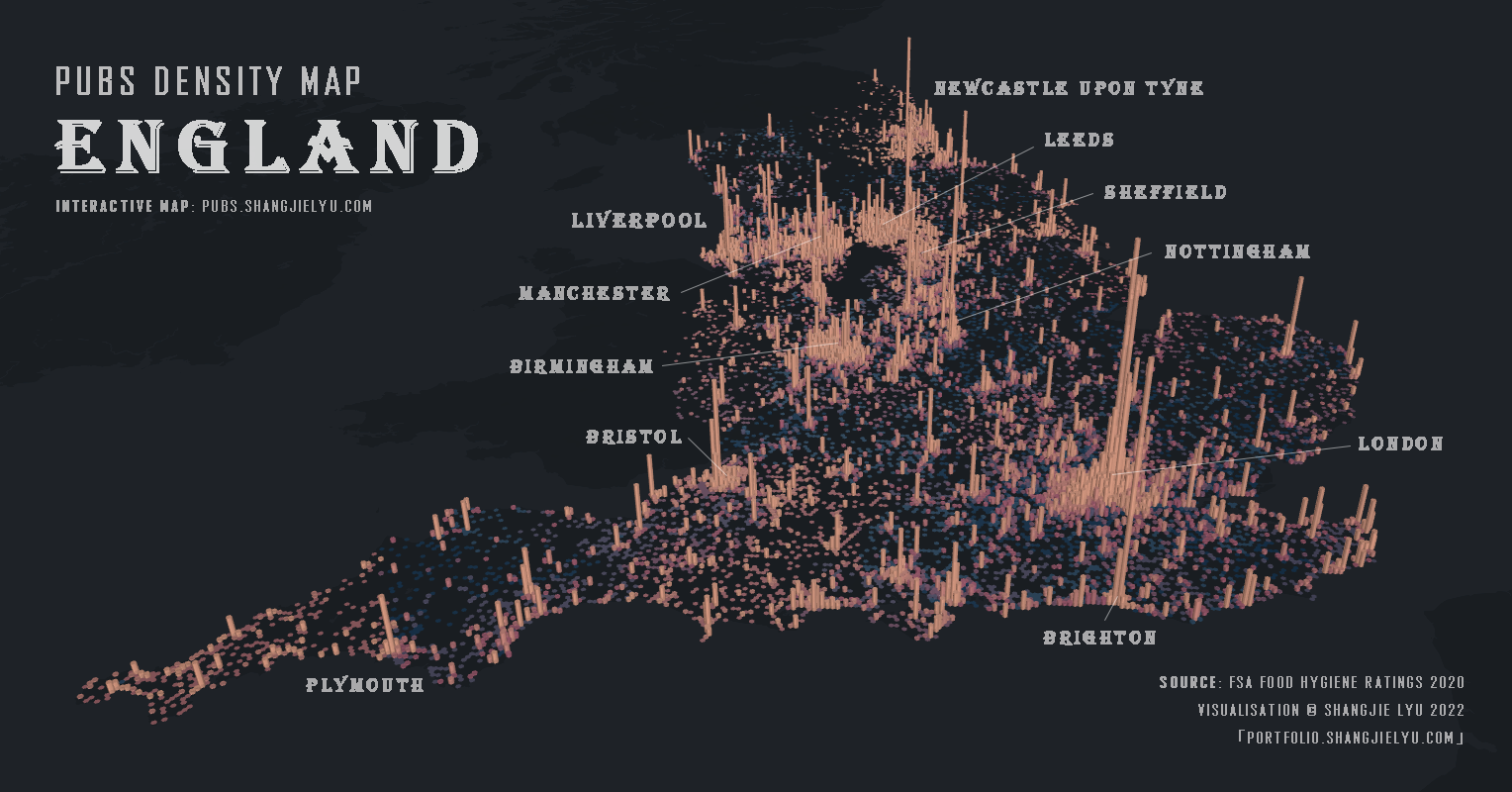 Map Visualization of geospatial density of the 43,772 pubs in England